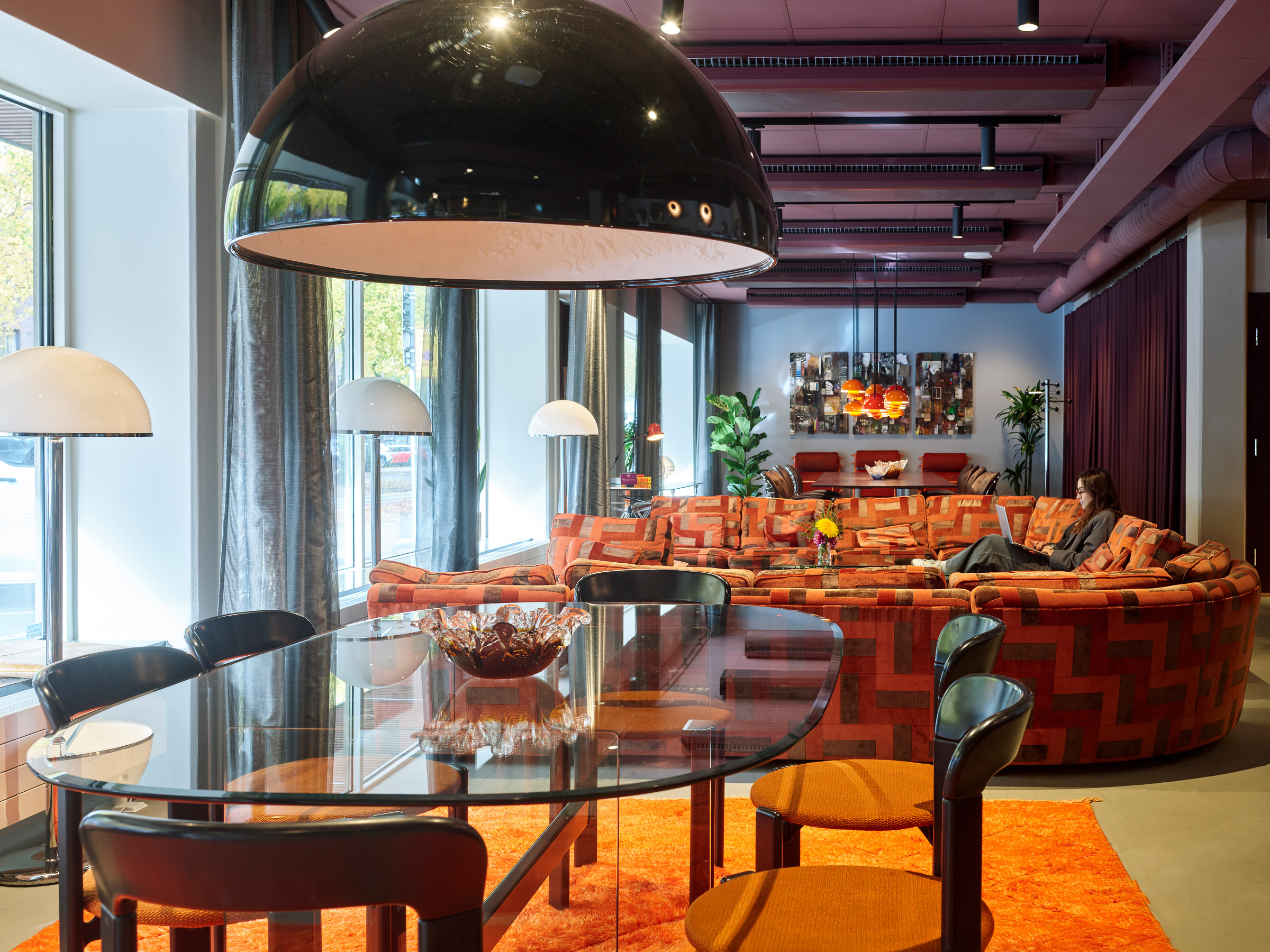 En återbrukad miljö med skön 60/70-talskänsla, från fasad till kaffekopp. Här finns loungeytor, kontor i olika storlekar och utrymme för både fokus och spontana möten.